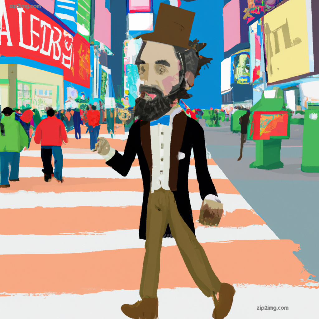 Abraham Lincoln walking around Times Squares in hipster clothing