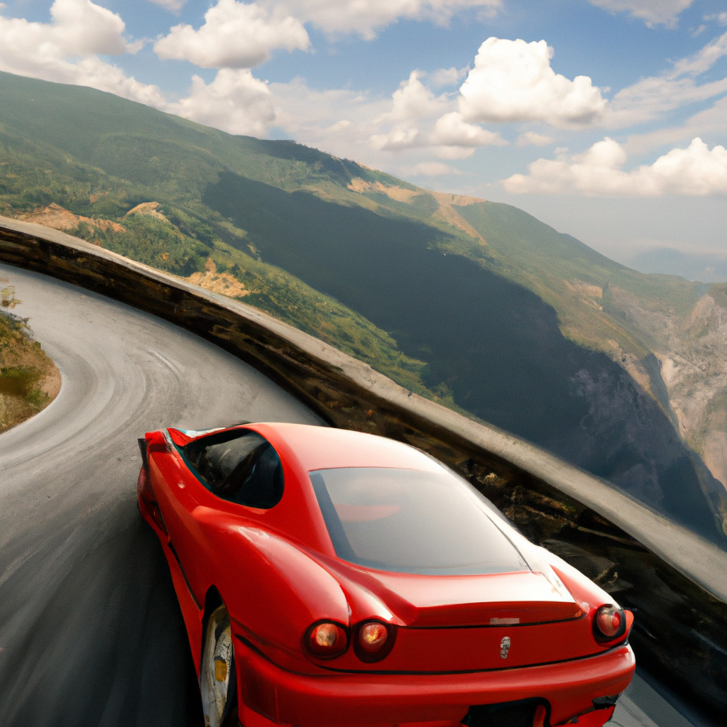 Ferrari 360 Modena Driving Through the Mountains.