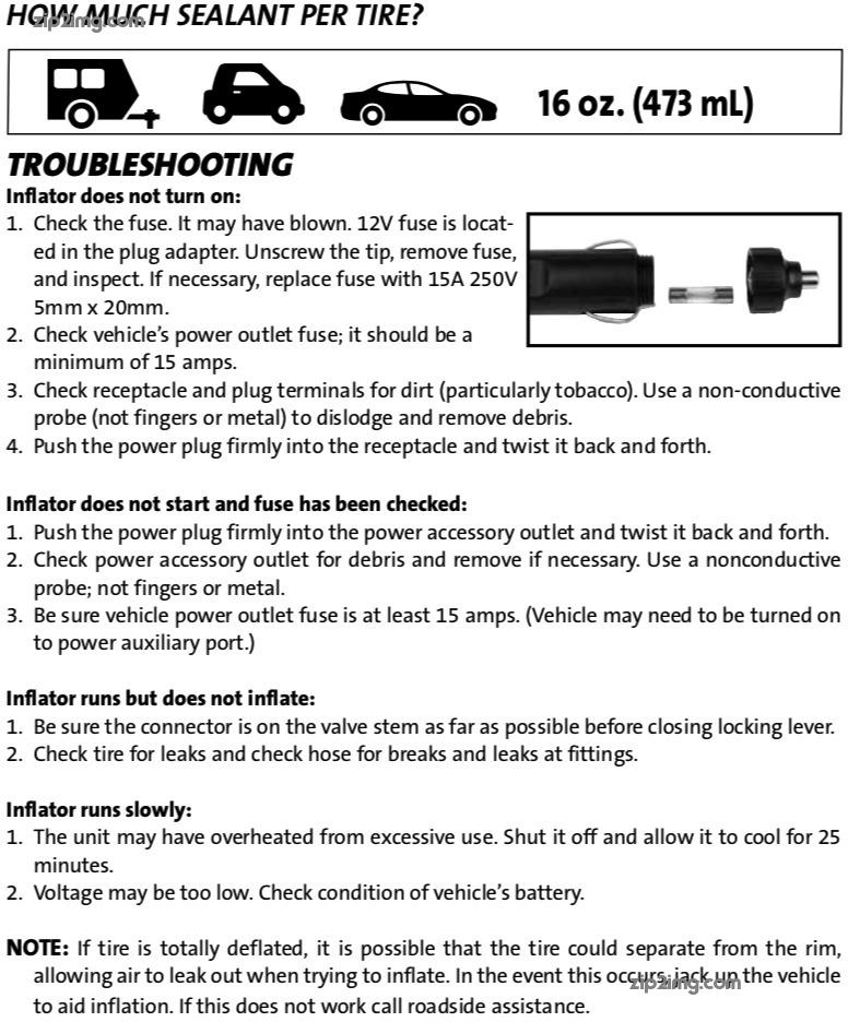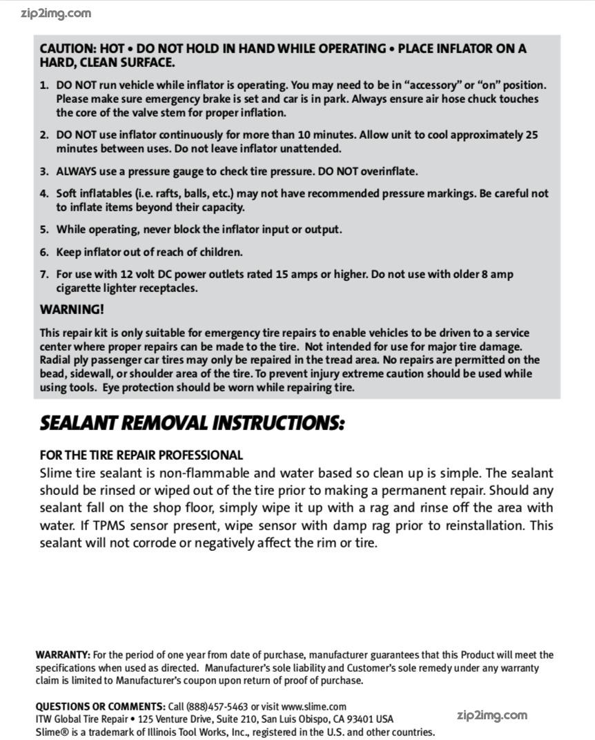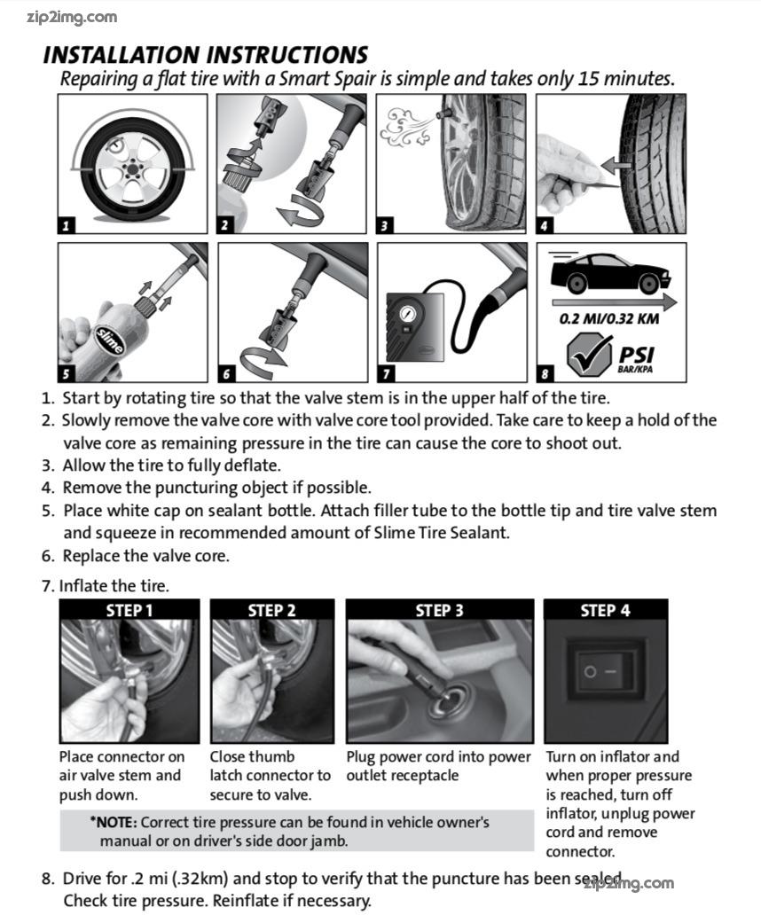 Instructions for Smart Spair Emergency Flat Tire Repair